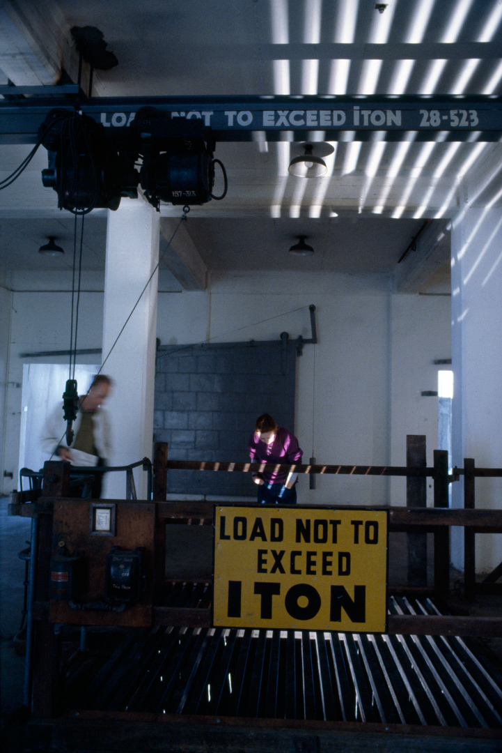 You enter the old building to the sound of distant water falling…somewhere. Approaching the disused hoist shaft the sound becomes clearer, and standing tentatively on the newly suspended metal grid you feel the wafts of cool air rising from the water falling invisibly below your feet. It is dark and mysterious below where a water source is dimly visible in the bowels of the building. Nature appears to have intruded on the order of the building, undermining the physical certainty of the architecture.