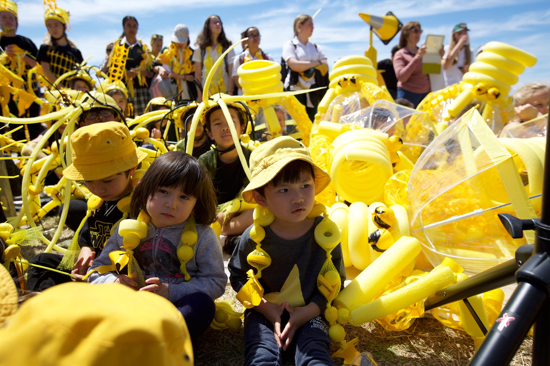 To mark the launch of the installation and the underwater planting, the students paraded the sculptures along the Art-Work-Site fence and a local school band performed ‘We All Live In The Yellow Crayweed’ – a special adaptation of the classic ‘Yellow Submarine’. To mark the end of the installation, a local community swimming group performed a synchronised swim around the buoy in celebration of the successful crayweed planting.