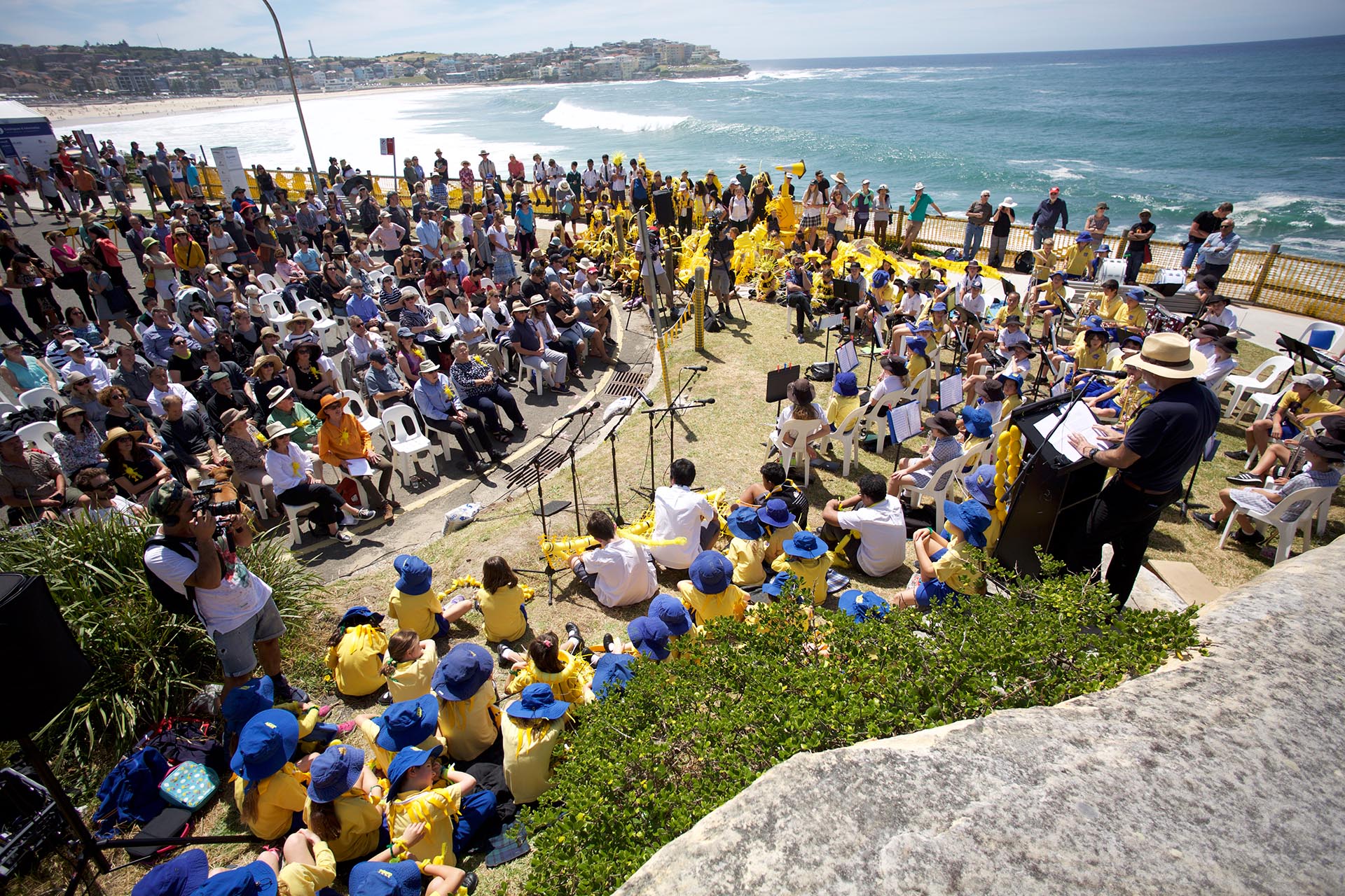Artists: Jennifer Turpin, Michaelie Crawford Artist Team: project manager: Christiane Statham, workshop artists: Jade Oakley, Bella Marechal-Ross, Lauren Baylor; installation and volunteers team: Rupert Trengrove, Anna Ewald-Rice, Zeynep Berk, Paula Llull-Llobera. Peter Turpin, Helen Turpin, Sally Turpin, Byron Harford, Louie Royal, Prue Mesa, Edwina Crawford, Lauren Pinn, Bianca Barcello, Scientists: Dr Adriana Verges (UNSW), Dr Ziggy Marzinelli (UNSW), Dr Peter Steinberg (UNSW, SIMS), Lana Kajlich Schools: Clovelly, Coogee and Rainbow Street Public, Randwick Boys and Randwick Girls High Schools, Tiggers Honeypot Childcare Centre, Bronte and Bondi Public Schools band and choir