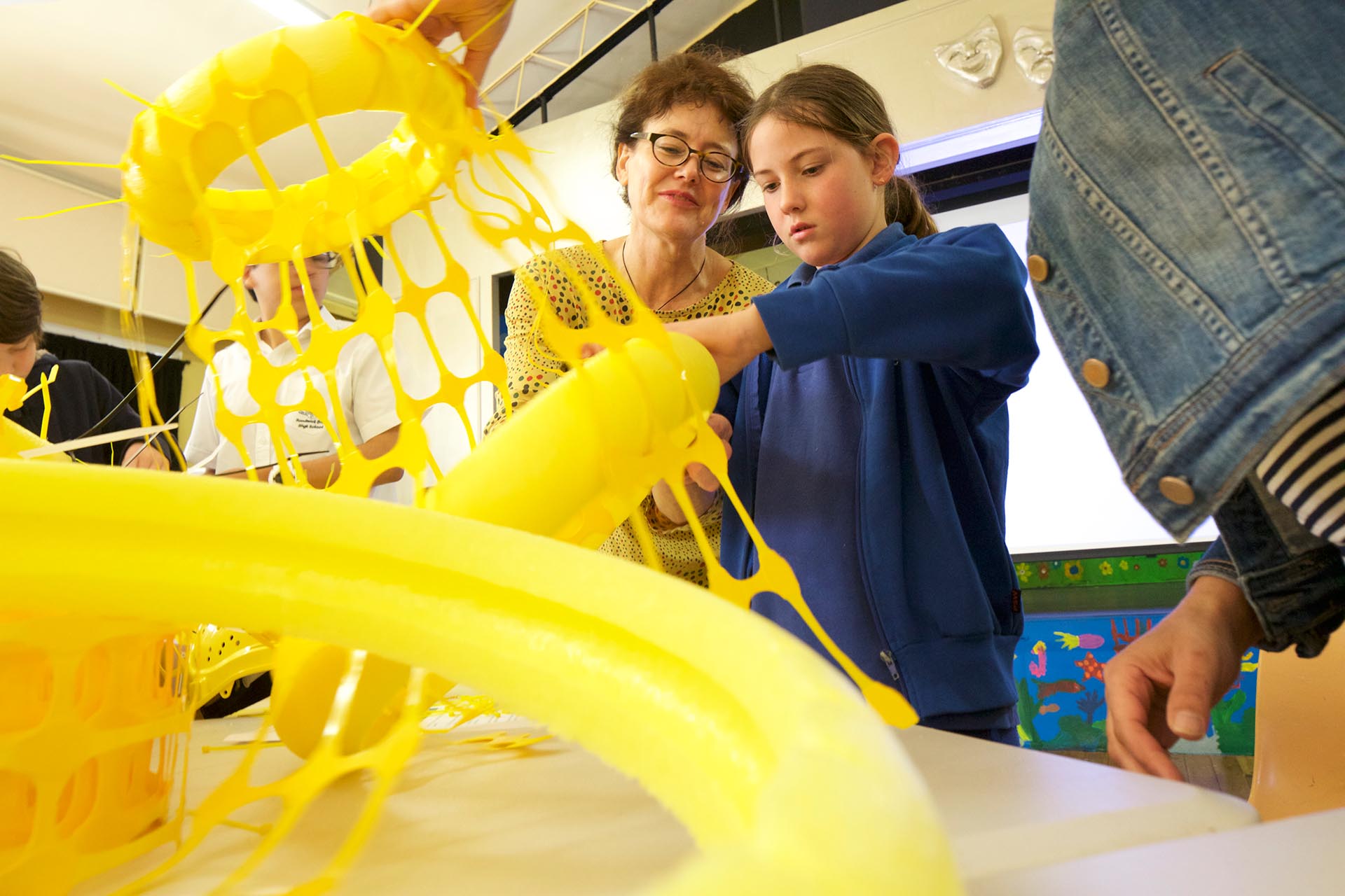 Both scientists and artists ran workshops with local school children to educate them about the project and create wearable sculptures of a selection of the marine creatures that will return to inhabit the crayweed into the future.